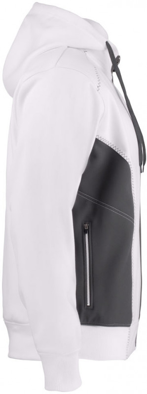 Kaptur z zamkiem błyskawicznym. Boki wzmocnione materiałem Softshell. Boczne kieszenie zapinane na zamki błyskawiczne.