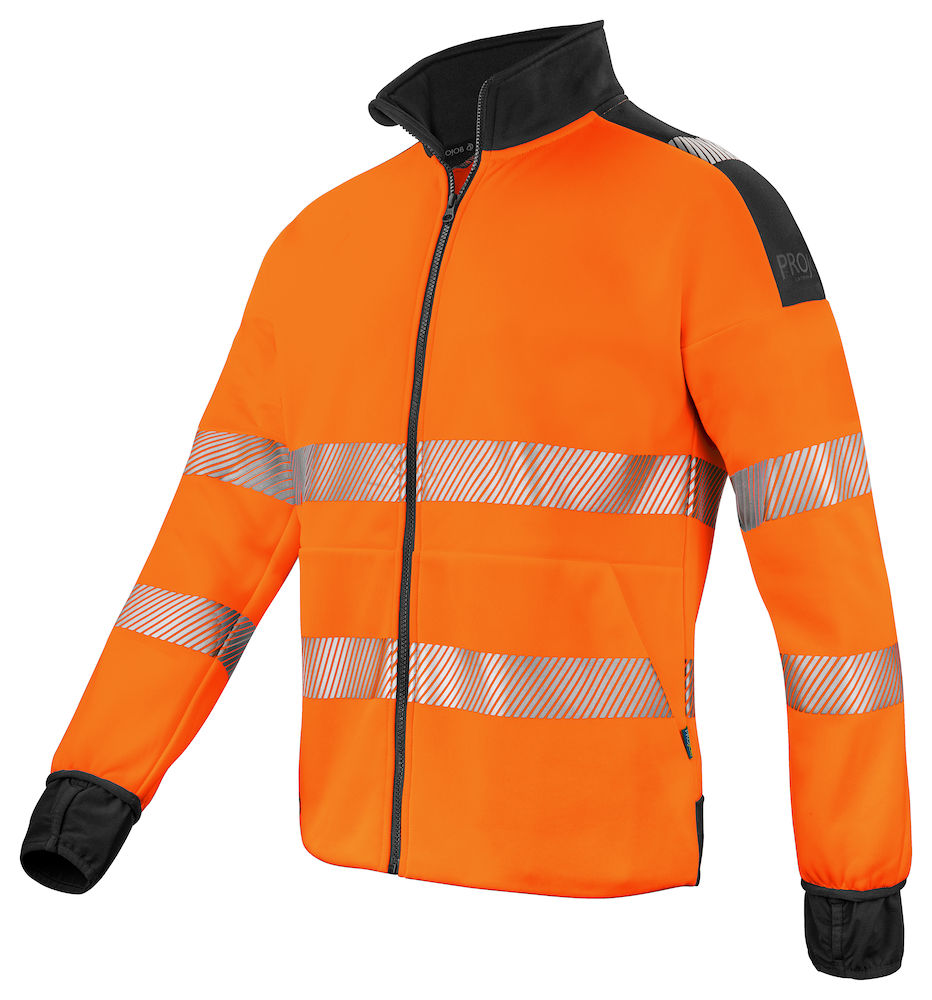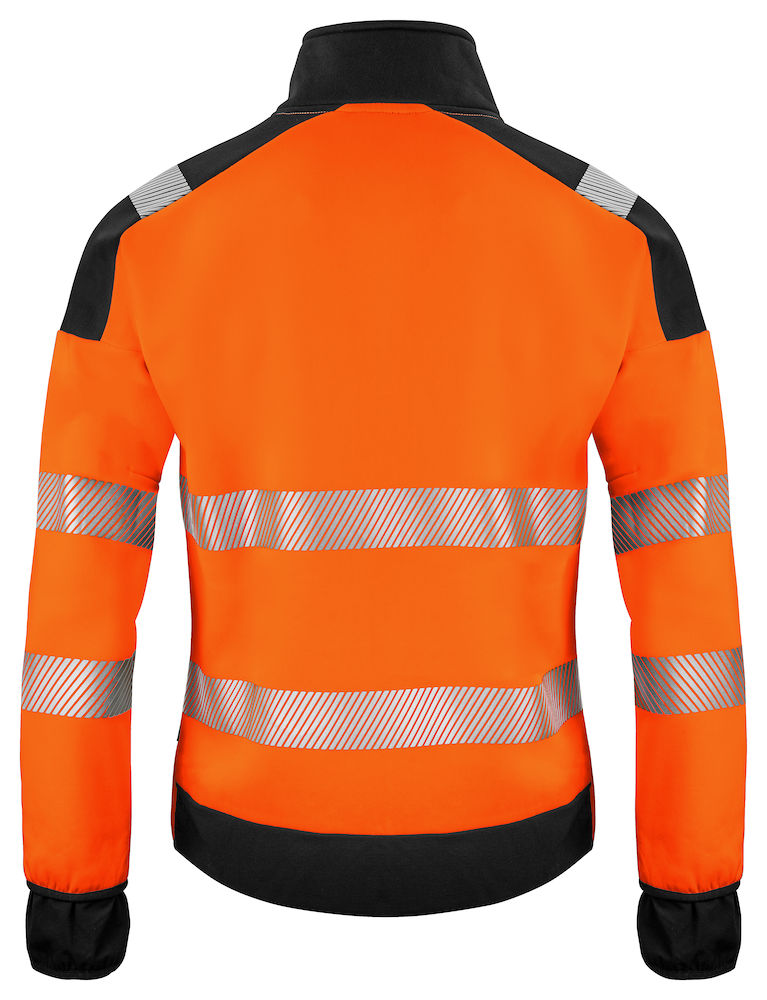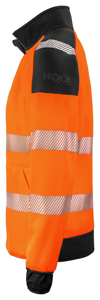 Rozpinana bluza z kontrastowym kolorem na ramionach, stójce, mankietach i na dolnej części pleców. Dopasowany krój z elastycznym materiałem softshell w dolnej części pleców zapewnia maksymalną swobodę ruchów i wygodę. Pojemne kieszenie boczne zapinane na zamek, pojemne kieszenie wewnętrzne z siateczki. Dodatkowy mankiet na końcach rękawów z materiału softshell z uchwytem na kciuk. Elementy odblaskowe firmy 3M, obecne również na ramionach. Logo Projob na ramieniu i na dole bluzy.