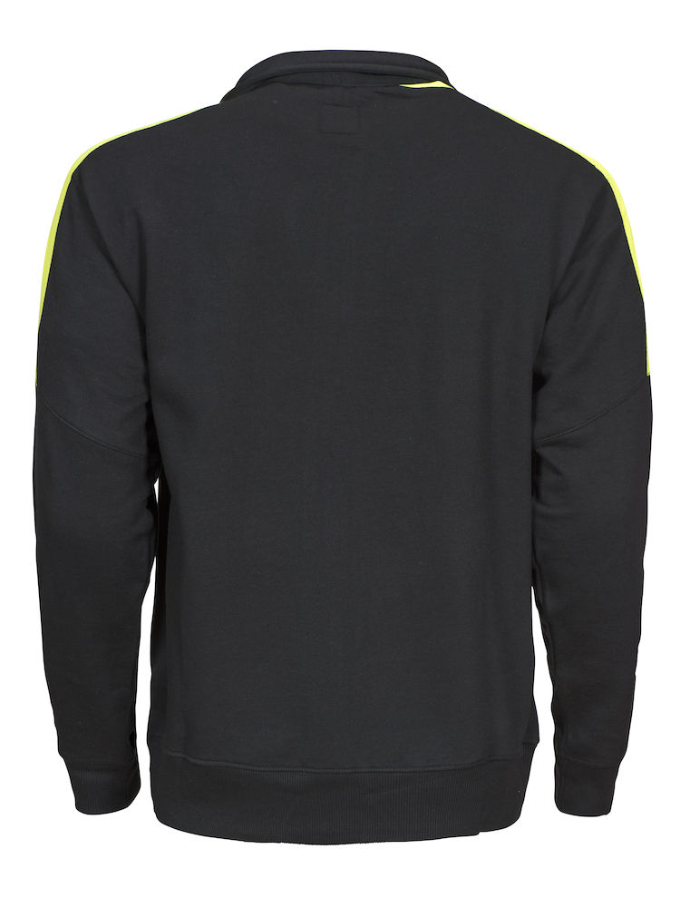 Bluza na zamek z fluorescencyjną tkaniną na ramionach dla lepszej widoczności. Pojemne kieszenie boczne zapinane na zamek. Ściągacz w pasie, mankietach i kołnierzu.