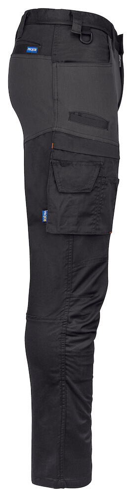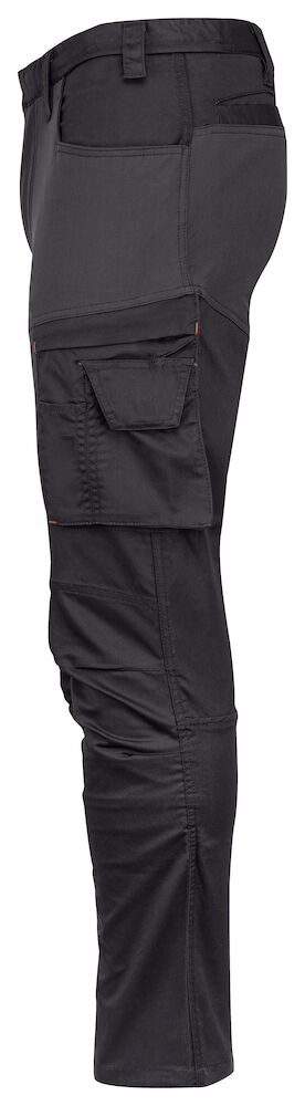 Spodnie serwisowe, które zapewniają maksymalną swobodę ruchu i komfort. Nowoczesny krój. Kieszenie na nogawkach po obu stronach zapinane na zamek błyskawiczny, po obu stronach kieszenie na telefon zapinane na rzep. Kieszeń na miarkę po prawej stronie. Tylne kieszenie. Szersza szlufka z tyłu zapobiega uciskowi paska. Uchwyt typu D-ring z przodu. Ukryte mocowanie do kieszeni kaburowych (nr art. 649042). Ukryty guzik z przodu. Wyprofilowane kolan, miejsce na ochraniacze kolan, regulowane na dwóch poziomach.