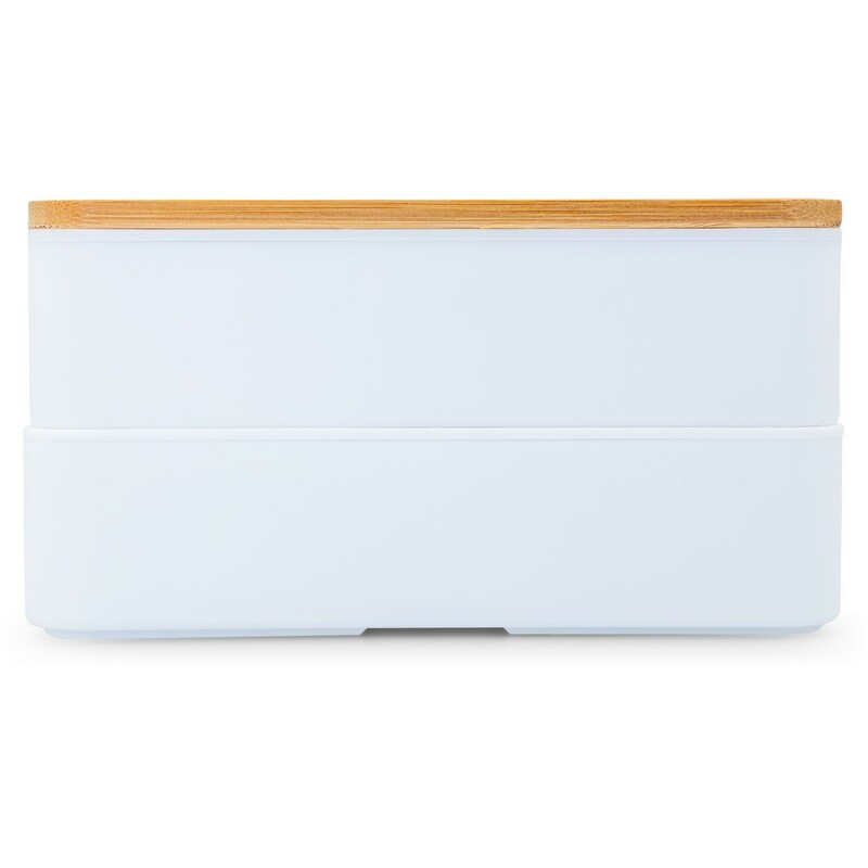 Pudełka śniadaniowe 2 w 1, 2x400 ml, w komplecie: widelec, nóż, łyżka, bambusowe wieczko, połączone paskiem