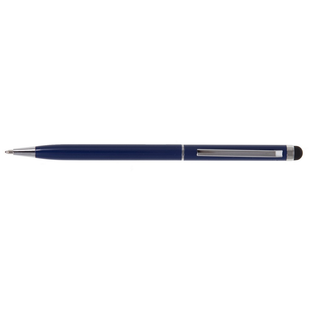 Długopis z kolorowym trzonem i elementami w srebrnym kolorze, niewielka średnica nadaje nowoczesnego wyglądu, końcówka touch pen umożliwiająca obsługę ekranów dotykowych, wkład w niebieskim kolorze, produkt wykonany z aluminium