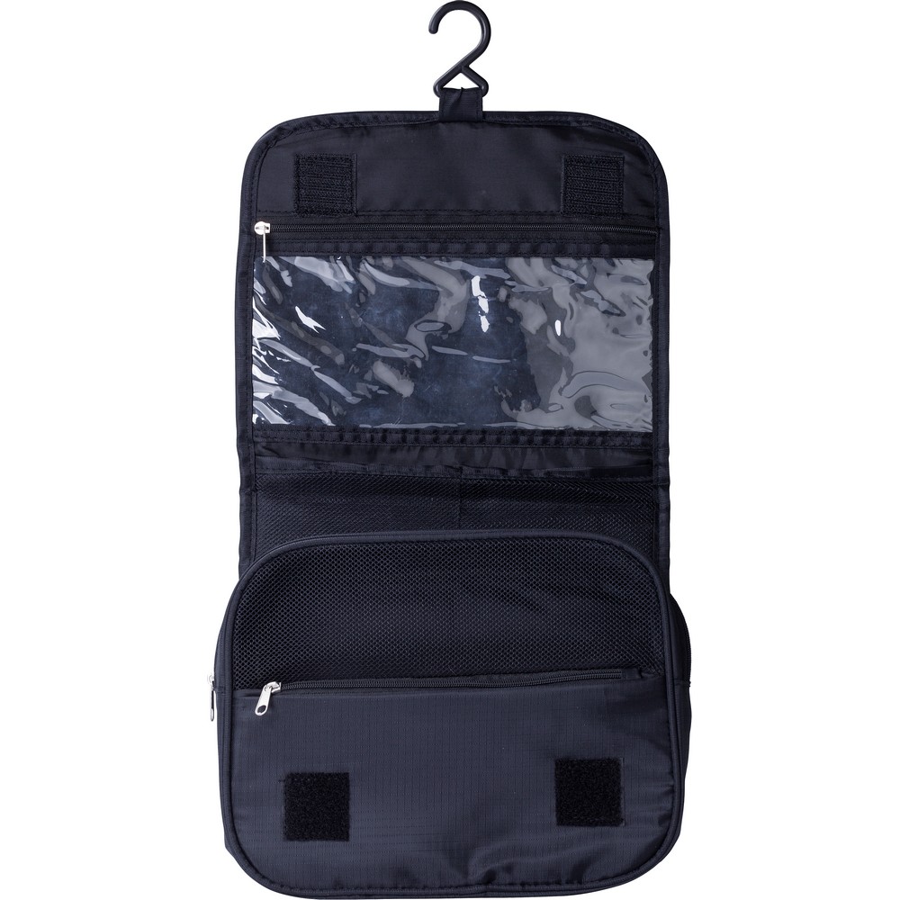 Kosmetyczka podróżna z haczykiem do zawieszenia, zapinana na rzepy, kieszenie wewnętrzne: duża kieszeń z siateczki zapinana na zamek, mała kieszonka zapinana na zamek, przezroczysta kieszeń zapinana na zamek