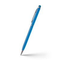 Długopis z kolorowym trzonem o matowym wykończeniu, niewielka średnica nadaje nowoczesnego wyglądu, dopasowana kolorystycznie końcówka touch pen umożliwiająca obsługę ekranów dotykowych, wkład w niebieskim kolorze, produkt wykonany z aluminium