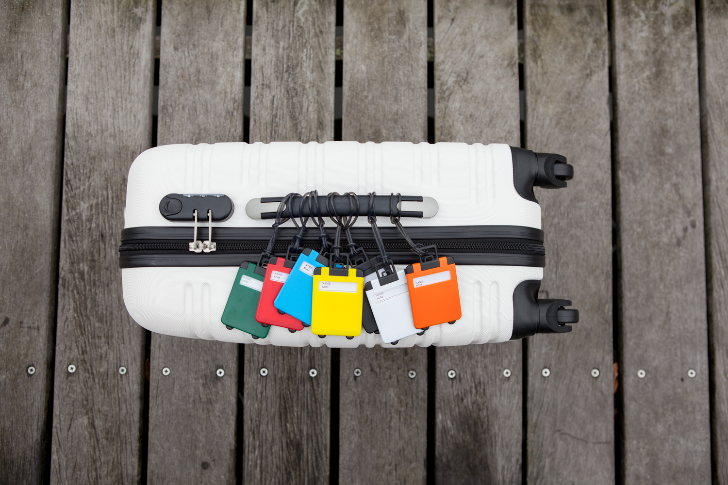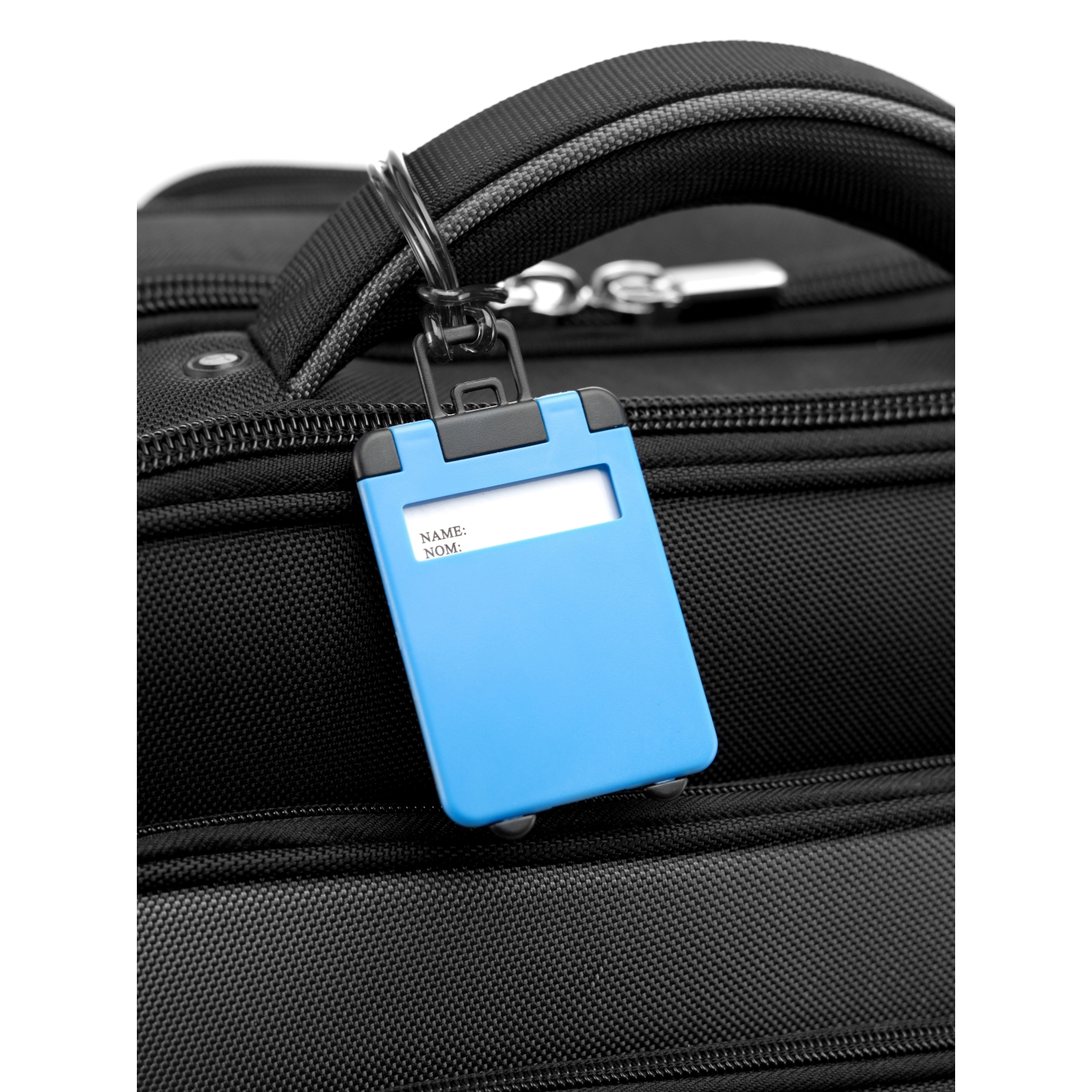 Zawieszka do bagażu w kształcie walizki z uchwytem umożliwiającym przyczepianie do walizki, dużo miejsca na wpisanie danych kontaktowych