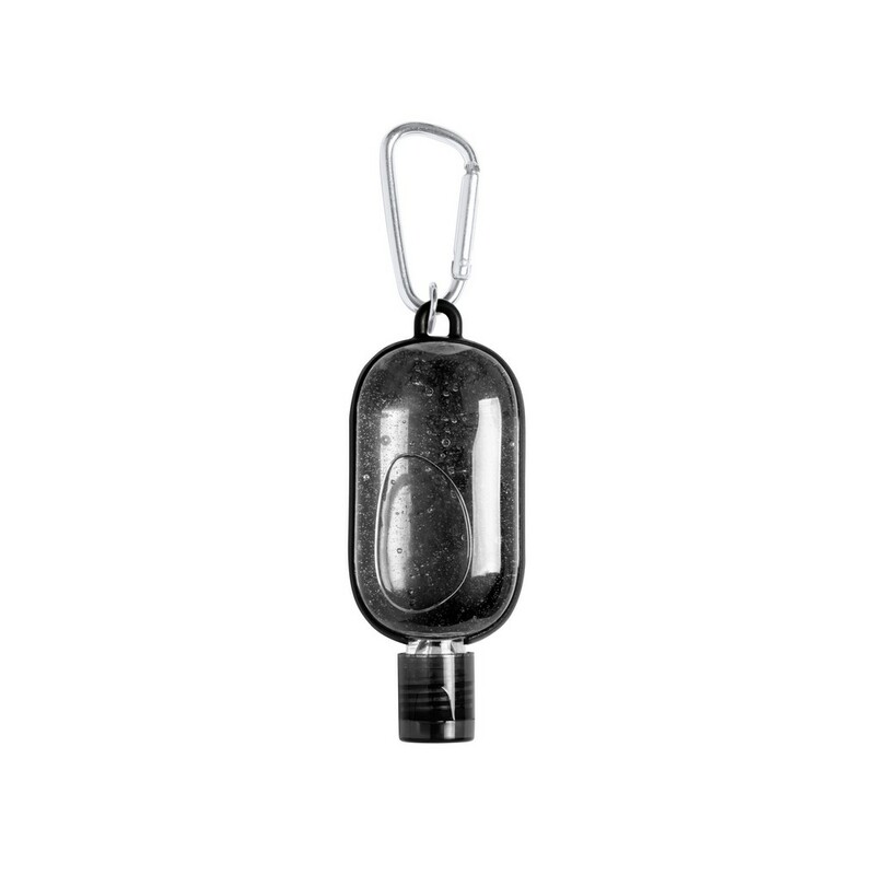 Żel do rąk w buteleczce (do wielokrotnego napełniania) z dozownikiem i karabińczykiem, zgodny z certyfikatem GMP (Good Manufacturing Practices), roztwór o 65% zawartości alkoholu, ekstrakt z aloesu, 30 ml