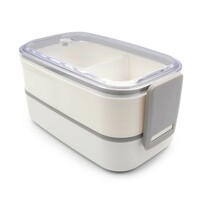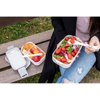 Pudełka śniadaniowe 2 w 1, 2x700 ml, szczelne, zamykane na 2 klipsy, w komplecie nóż i łyżkowidelec, górne pudełko z wyjmowaną przegrodą i przezroczystym wieczkiem