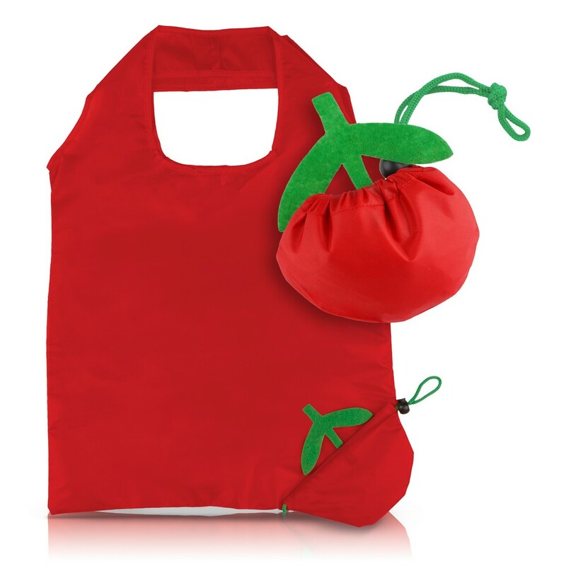 Składana torba na zakupy z pokrowcem w kształcie owoców (05-truskawka, 06-ananas, 07-pomarańcza, 10-jabłko, 13-winogrono, 62-kiwi, 99-pomidor), produkt wykonany z poliestru 190T