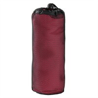 Ręcznik w czarnym, siateczkowym pokrowcu zamykanym na sznurek z klipem, produkt wykonany z mikrofibry o gramaturze 200 g/m2