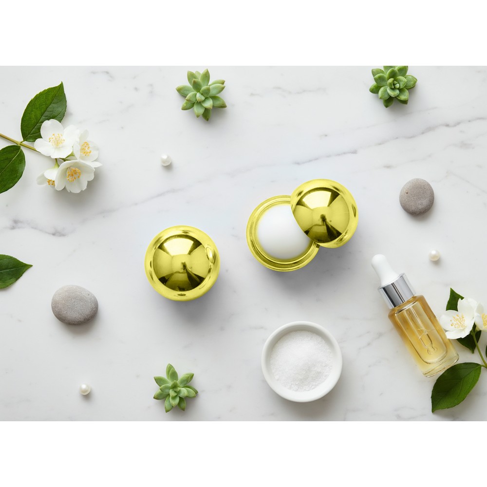 Pomadka ochronna z filtrem przeciwsłonecznym SPF15, który zatrzymuje 93% promieni UVB, w kształcie kuli, waniliowy zapach, posiada metaliczne, błyszczące wykończenie, produkt wykonany z ABS