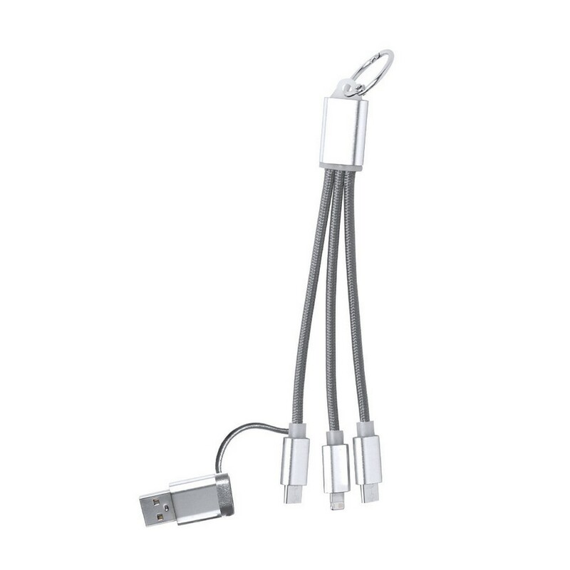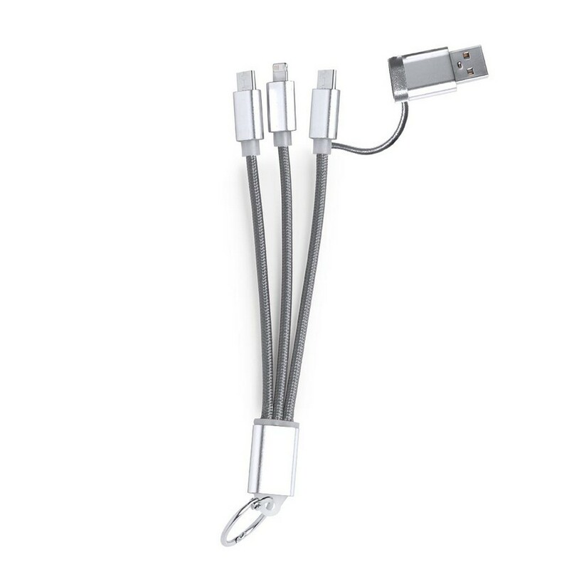 Kabel do ładowania, brelok do kluczy z 4 końcówkami: USB, 2x USB-C oraz 2 w 1 (micro USB oraz kompatybilna z urządzeniami iOS), 5V/2.4A