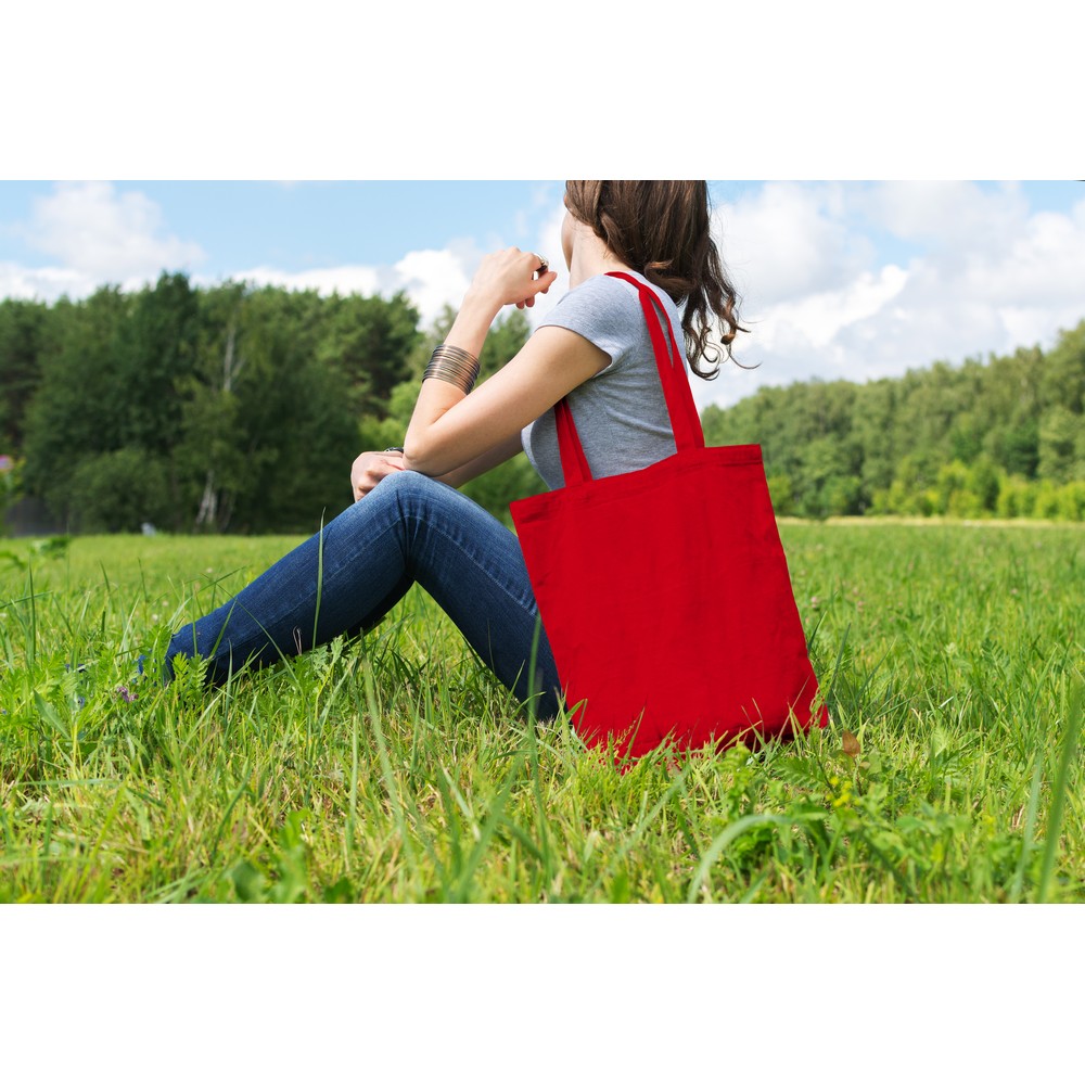 Torba na zakupy, posiada długie uchwyty umożliwiające noszenie na ramieniu, produkt wykonany z bawełny o gramaturze 140 g/m2