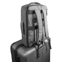 Plecak na laptopa 15,6" z bocznym uchwytem umożliwiającym funkcjonowanie jako torba na laptopa, zapinana główna przegroda z miękką kieszenią na laptopa lub dokumenty, 2 małe kieszenie oraz 2 szlufki na długopisy, zamek błyskawiczny z dodatkowym pullerem ułatwiającym rozpinanie, pasek do zamocowania na torbie podróżnej, posiada regulowane paski na ramię umożliwiające dopasowanie ich długości do własnych preferencji, produkt wykonany z RPET