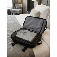 Plecak kabinowy Exclusive Collection, rozszerzalna konstrukcja pomaga dostosować wymiary plecaka do wymogów transportu oraz indywidualnych potrzeb użytkownika, dwie przegrody główne zamykane na zamek błyskawiczny, dwa regulowane paski kompresyjne ułatwiające stabilizacje plecaka, miękkie i regulowane paski na ramię umożliwiające dopasowanie ich długości do własnych preferencji, produkt wykonany z poliestru i PU