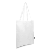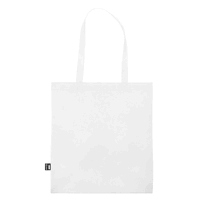 Torba na zakupy wykonana z RPET, posiada długie uchwyty umożliwiające noszenie na ramieniu, ikona RPET na metce, produkt wykonany z non-woven RPET 75 g/m2