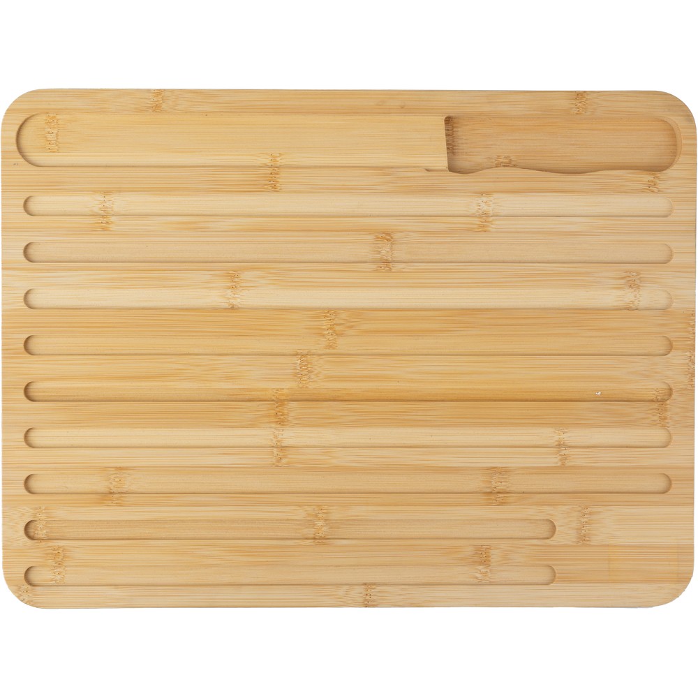 Deska do krojenia chleba, zawiera ząbkowany nóż do krojenia chleba wykonany ze stali nierdzewnej, doskonale sprawdzi się jako element wyposażenia każdej kuchni, produkt wykonany z bambusa