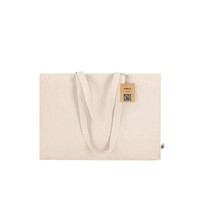 Torba na zakupy, posiada długie uchwyty umożliwiające noszenie na ramieniu, produkt wykonany z bawełny o gramaturze 220 g/m², zgodny z certyfikatem FAIRTRADE