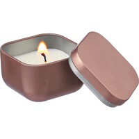 Świeczka zapachowa o zapachu wanilii w kolorowym słoiczku z pokrywką, około 10 godzin palenia, zapakowana w brązowy kartonik, produkt wykonany z metalu