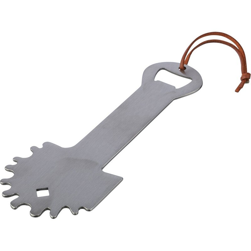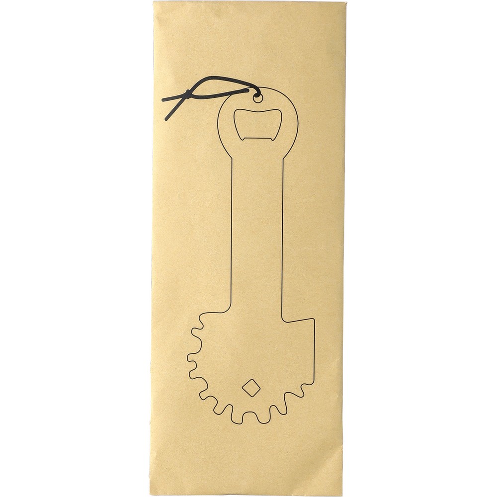 Stalowy skrobak do grilla, otwieracz do butelek, sznurek ułatwiający noszenie, zapakowany w rękaw papieru kraftowego