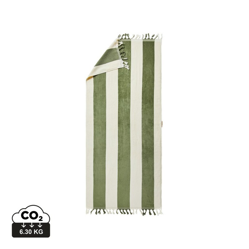 Ręcznik plażowy, wykonany w 100% z bawełny o gramaturze 450 g/m2 z certyfikatem GOTS