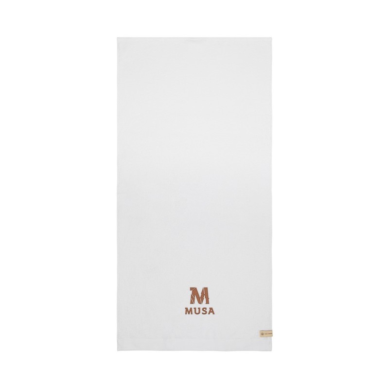 Ręcznik, miękki i solidny, wykonany w 68% z bawełny z certyfikatem BCI i 32% z Tencelu, który jest naturalnym włóknem pozyskiwanym z certyfikowanych lasów i który zapewnia doskonałą chłonność