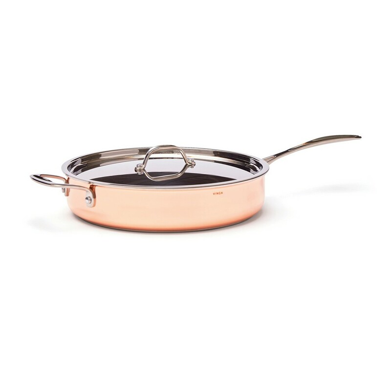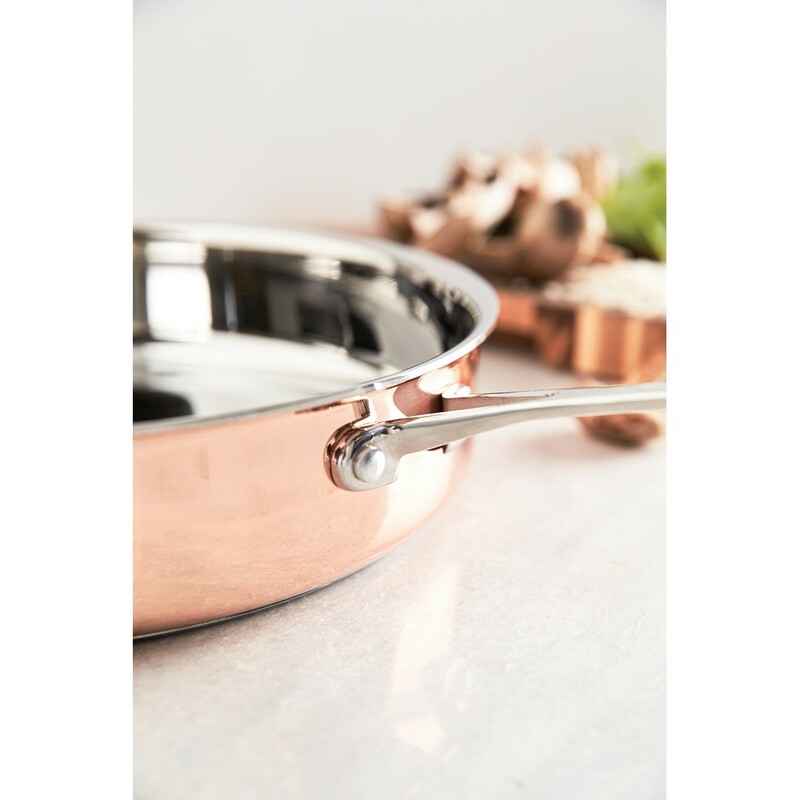 Patelnia z pokrywką, wykonana z miedzi, aluminium i stali nierdzewnej, uchwyt ze stali nierdzewnej, nadaje się do wszystkich rodzajów kuchenek, w tym indukcyjnych