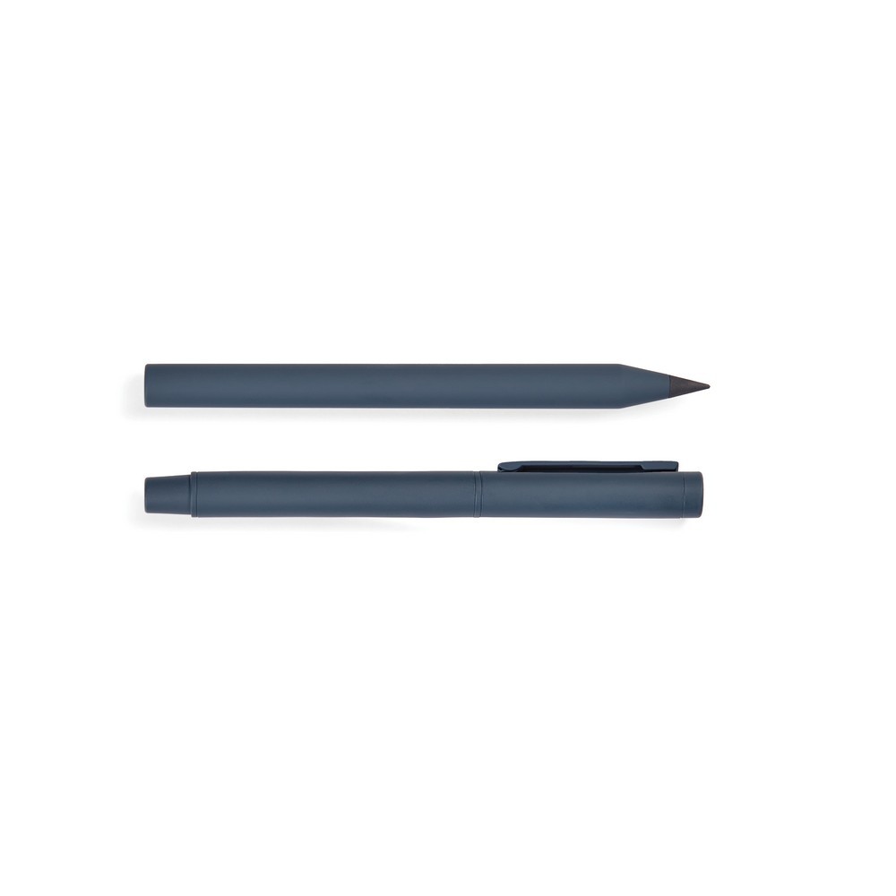 Ekskluzywny zestaw piśmienny, pióro kulkowe oraz długopis, niebieski wkład, wykonane z materiału z recyklingu, produkt zawiera 52% aluminium z recyklingu oraz 10% stali nierdzewnej z recyklingu