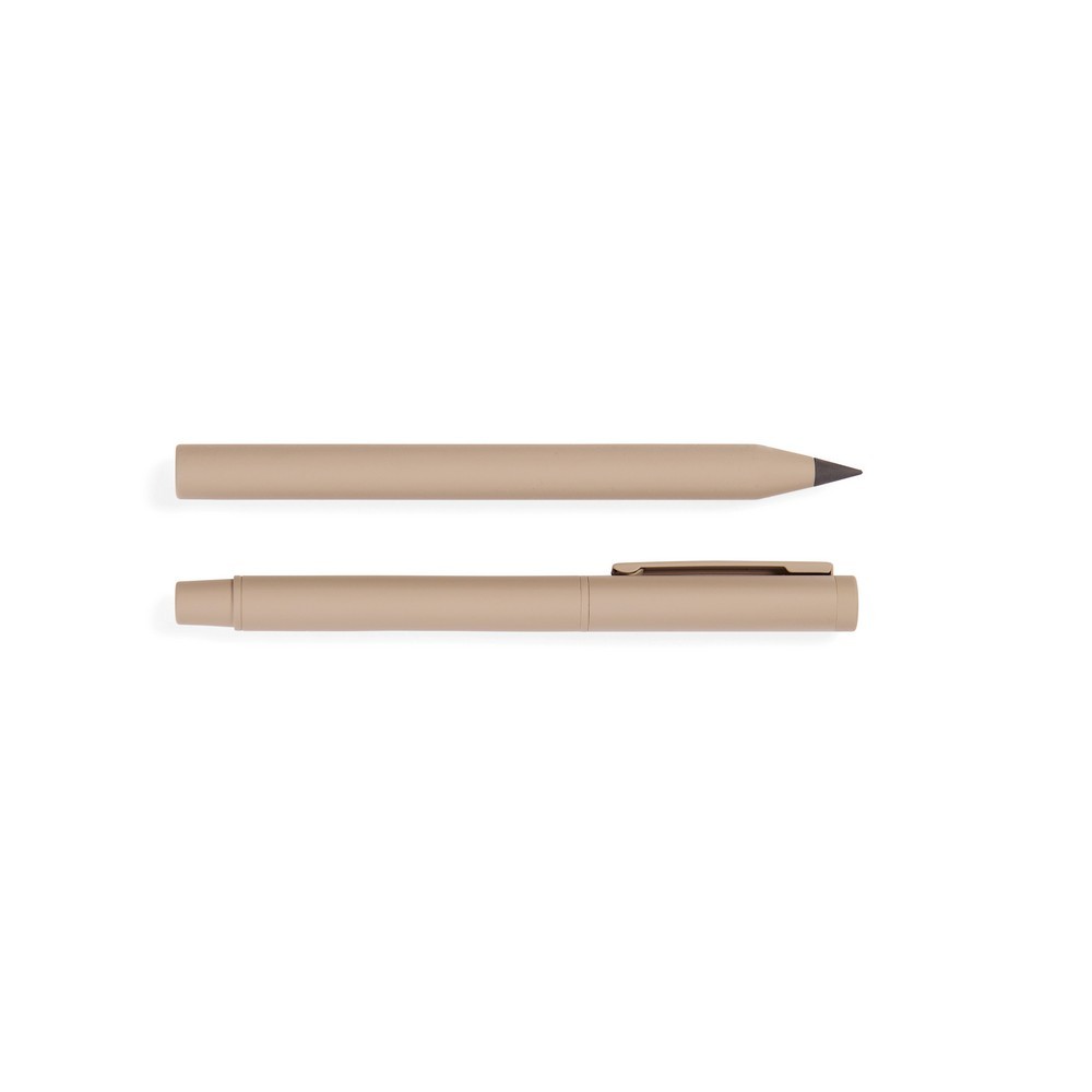 Ekskluzywny zestaw piśmienny, pióro kulkowe oraz długopis, niebieski wkład, wykonane z materiału z recyklingu, produkt zawiera 52% aluminium z recyklingu oraz 10% stali nierdzewnej z recyklingu