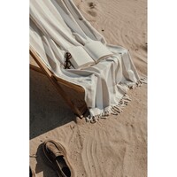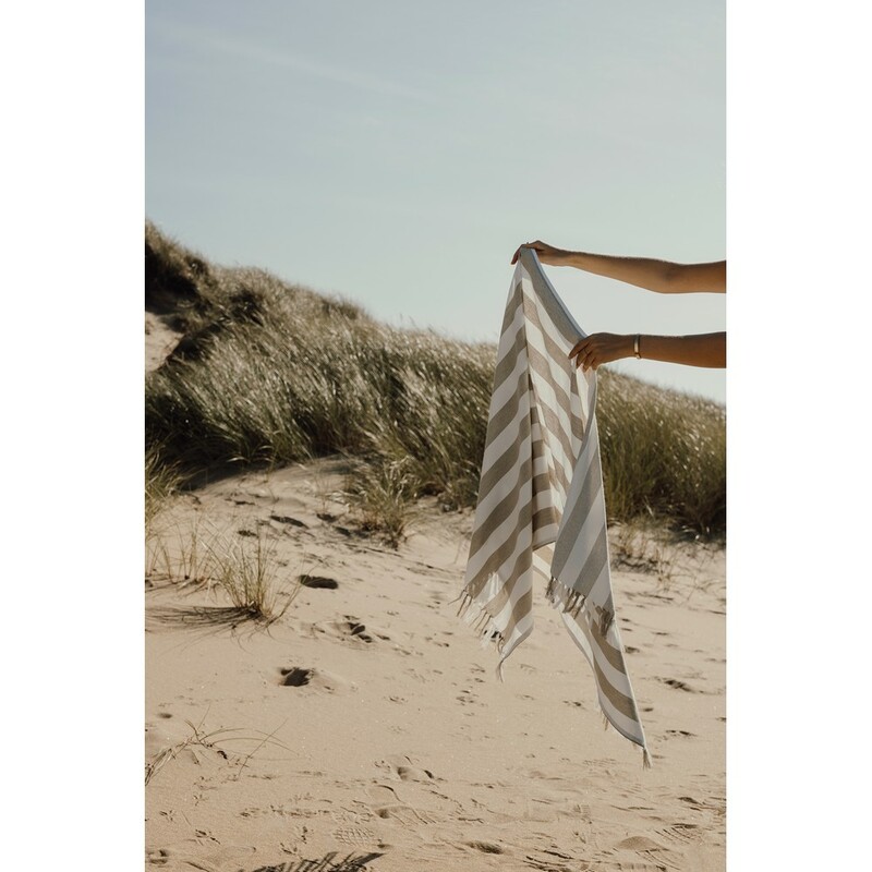 Ręcznik, wykonany z mieszanki 68% bawełny z recyklingu oraz 29% poliestru z recyklingu, miękki i przewiewny