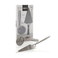 Zestaw do pizzy, nóż i łopatka, wykonany ze stali nierdzewnej, nadaje się również do krojenia wypieków, posiada dożywotnią gwarancję, nadaje się do mycia w zmywarce