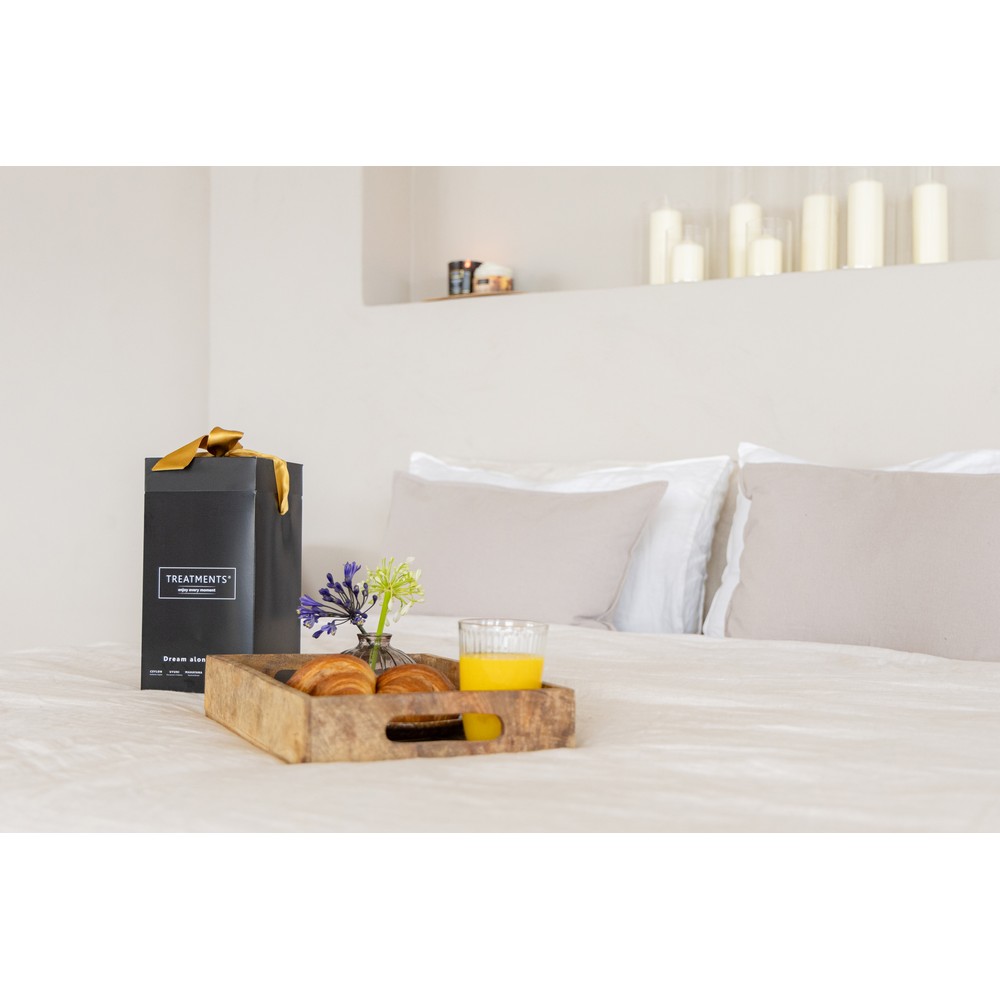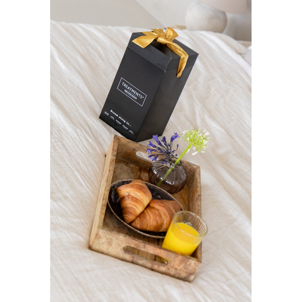Zestaw kosmetyków Small TREATMENTS, przeznaczony dla kobiet i mężczyzn,w zestawie znajduje się: mgiełka do ciała i pościeli 50 ml, olejek do ciała 50 ml, pieniący się żel pod prysznic 200 ml, elegancki, papierowy kartonik, w którym zapakowane są kosmetyki, sprawdzą się w codziennej pielęgnacji, dostępne są różne warianty zapachowe: 03 - Ceylon, 06 - Mahayana, 11 - Uyuni, 19 - Shinshiro. Znakowanie produktu jest możliwe tylko na srebrnej lub złotej folii z czarnym nadrukiem albo na czarnej apli ze srebrnym lub złotym nadrukiem.