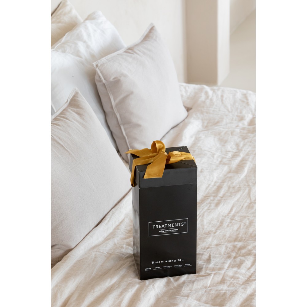 Zestaw kosmetyków Small TREATMENTS, przeznaczony dla kobiet i mężczyzn,w zestawie znajduje się: mgiełka do ciała i pościeli 50 ml, olejek do ciała 50 ml, pieniący się żel pod prysznic 200 ml, elegancki, papierowy kartonik, w którym zapakowane są kosmetyki, sprawdzą się w codziennej pielęgnacji, dostępne są różne warianty zapachowe: 03 - Ceylon, 06 - Mahayana, 11 - Uyuni, 19 - Shinshiro. Znakowanie produktu jest możliwe tylko na srebrnej lub złotej folii z czarnym nadrukiem albo na czarnej apli ze srebrnym lub złotym nadrukiem.