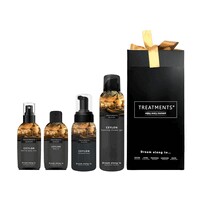 Zestaw kosmetyków Medium TREATMENTS, przeznaczony dla kobiet i mężczyzn, w zestawie znajduje się: mgiełka do ciała i pościeli 50 ml, olejek do ciała 50 ml, pieniący się żel pod prysznic 200ml, pianka do mycia rąk 250 ml, elegancki, papierowy kartonik, w którym zapakowane są kosmetyki, sprawdzą się w codziennej pielęgnacji, dostępne są różne warianty zapachowe: 03 - Ceylon, 06 - Mahayana, 11 - Uyuni, 19 - Shinshiro. Znakowanie produktu jest możliwe tylko na srebrnej lub złotej folii z czarnym nadrukiem albo na czarnej apli ze srebrnym lub złotym nadrukiem.
