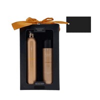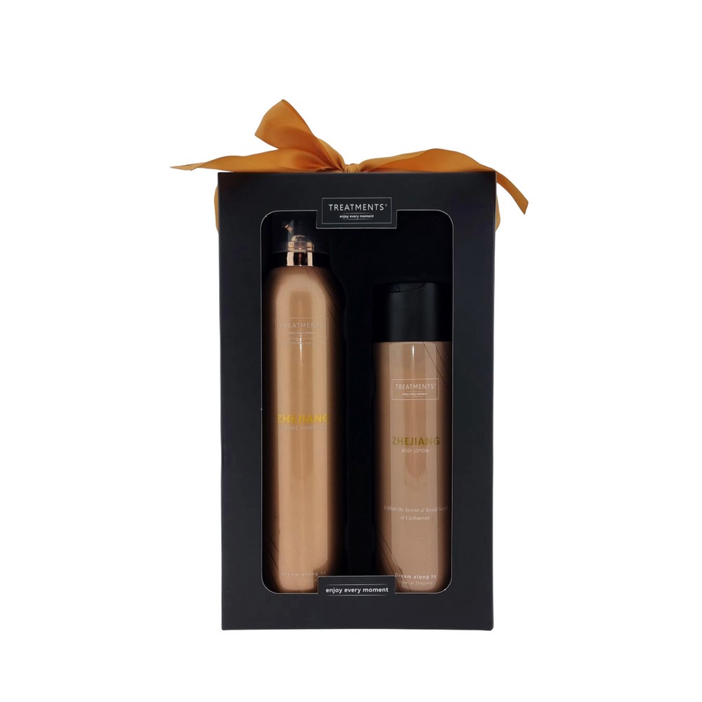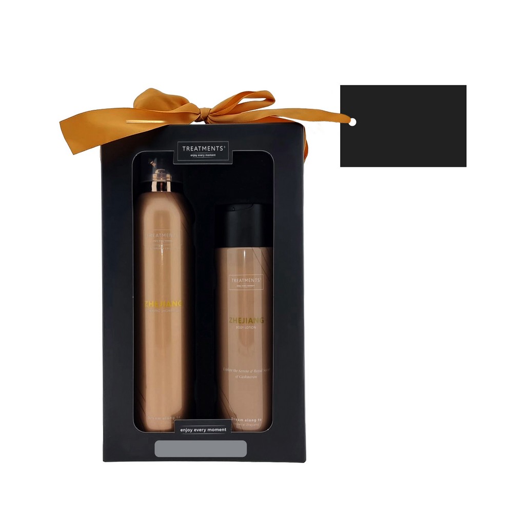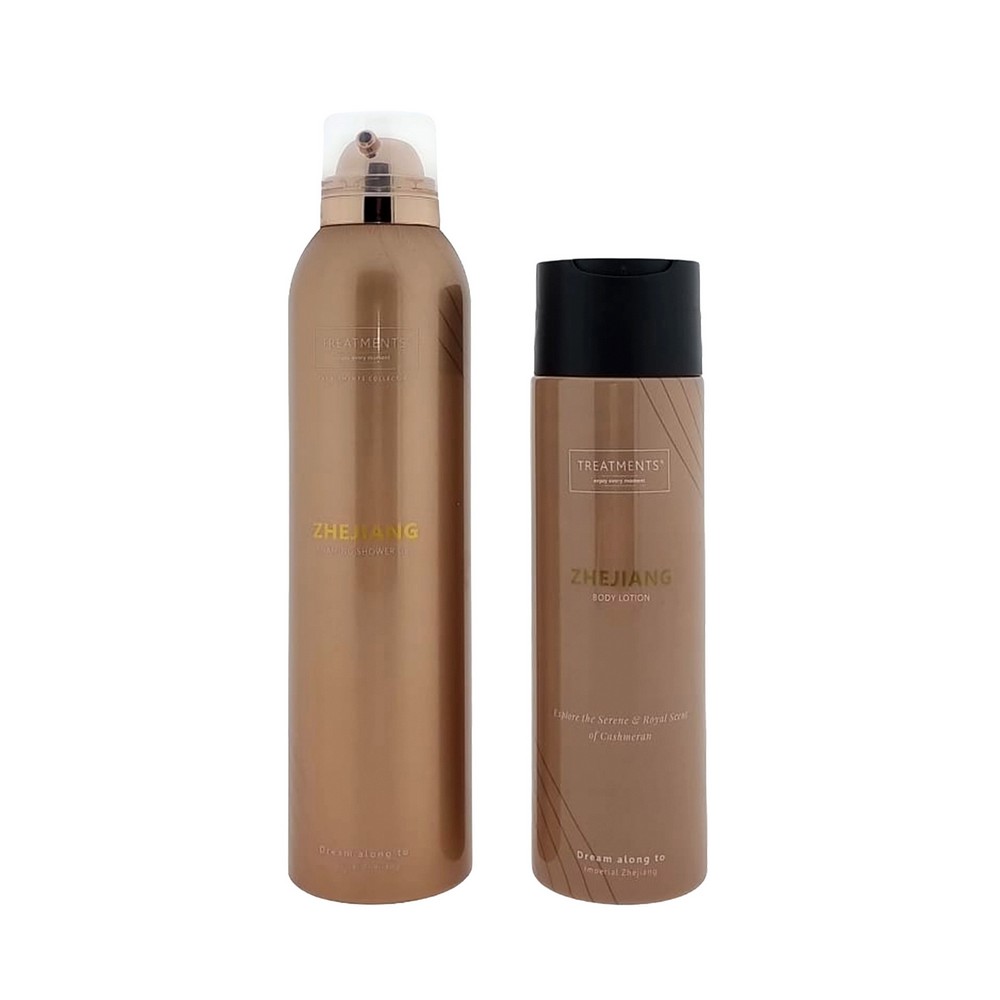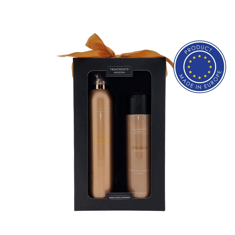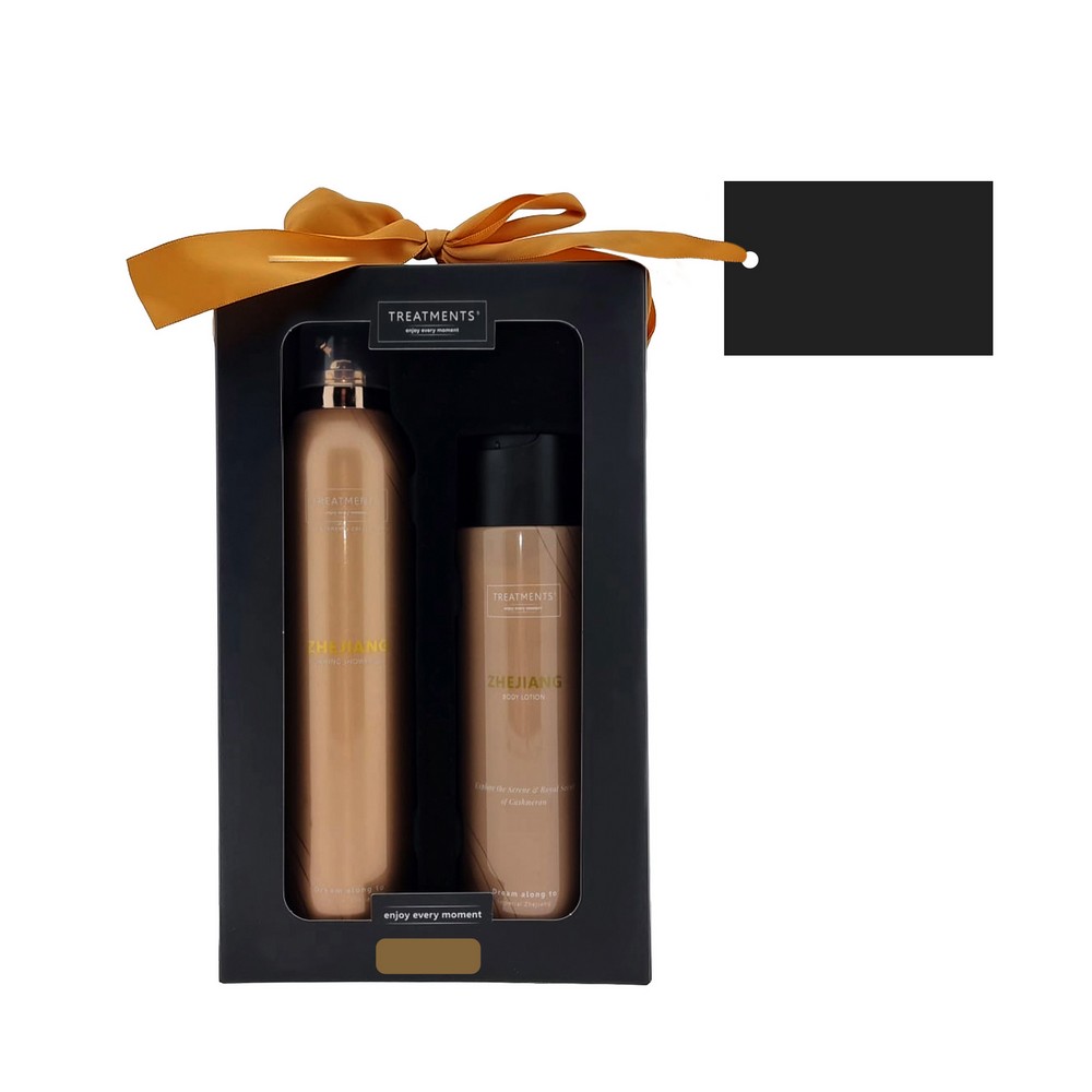 Zestaw kosmetyków Tenderness TREATMENTS, przeznaczony dla kobiet i mężczyzn, w zestawie znajduje się: pieniący się żel pod prysznic 200 ml, balsam do ciała 250 ml, elegancki, papierowy kartonik, w którym zapakowane są kosmetyki, sprawdzą się w codziennej pielęgnacji, dostępne są różne warianty zapachowe: 03 - Ceylon, 06 - Mahayana, 08 - Omani, 11 - Uyuni, 16 - Zhejinag, 19 - Shinshiro, 21 - Verona, 98 - Samoa. Znakowanie produktu jest możliwe tylko na srebrnej lub złotej folii z czarnym nadrukiem albo na czarnej apli ze srebrnym lub złotym nadrukiem.