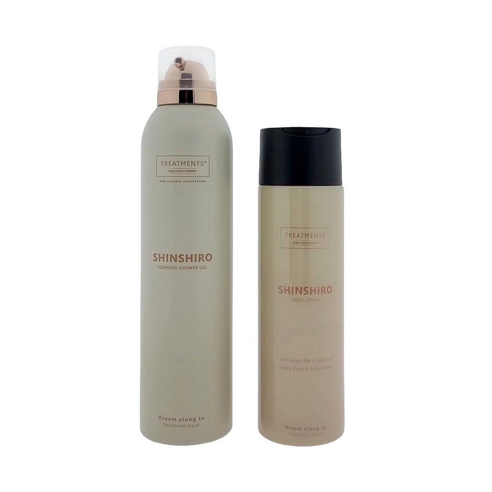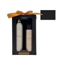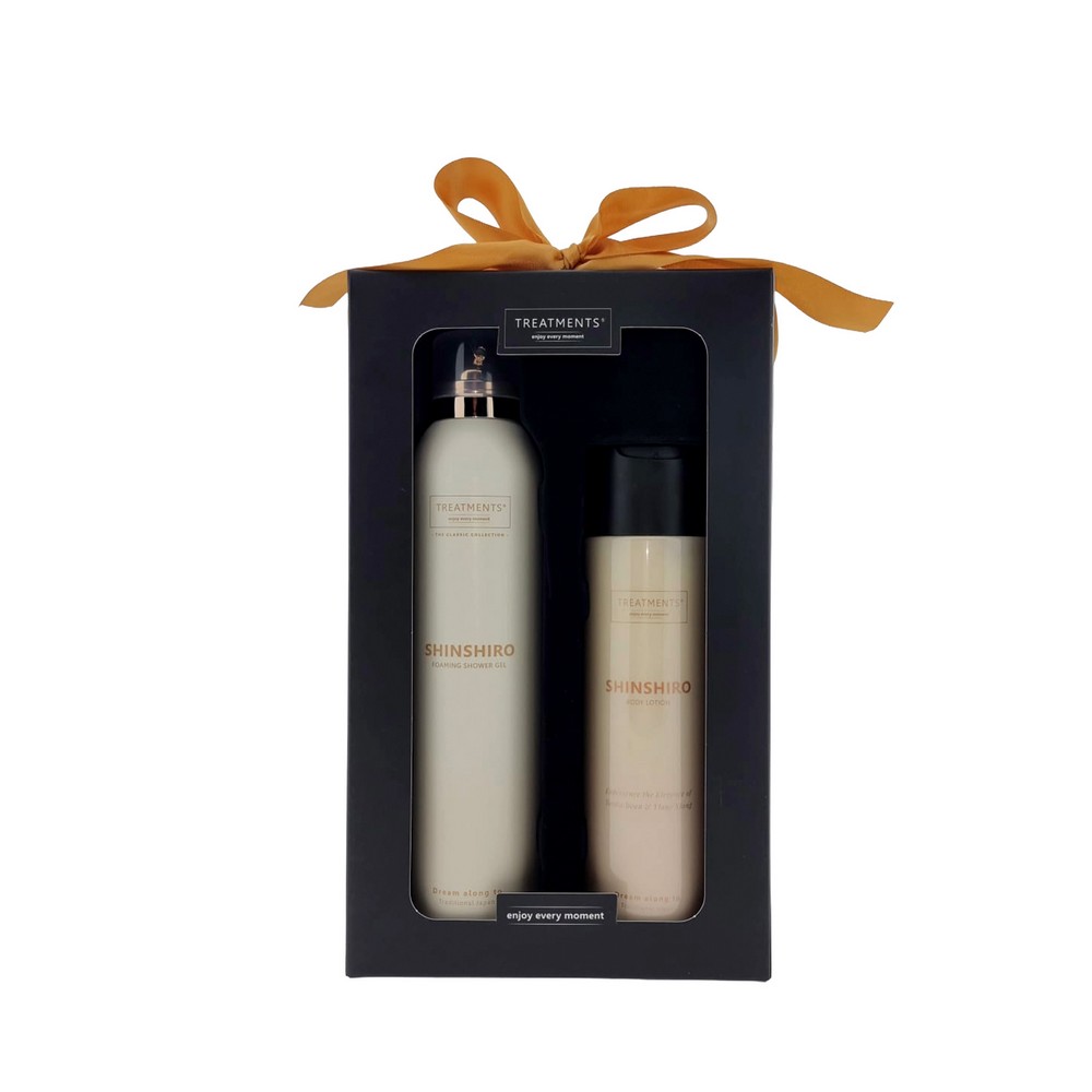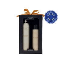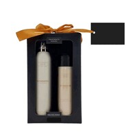 Zestaw kosmetyków Tenderness TREATMENTS, przeznaczony dla kobiet i mężczyzn, w zestawie znajduje się: pieniący się żel pod prysznic 200 ml, balsam do ciała 250 ml, elegancki, papierowy kartonik, w którym zapakowane są kosmetyki, sprawdzą się w codziennej pielęgnacji, dostępne są różne warianty zapachowe: 03 - Ceylon, 06 - Mahayana, 08 - Omani, 11 - Uyuni, 16 - Zhejinag, 19 - Shinshiro, 21 - Verona, 98 - Samoa. Znakowanie produktu jest możliwe tylko na srebrnej lub złotej folii z czarnym nadrukiem albo na czarnej apli ze srebrnym lub złotym nadrukiem.