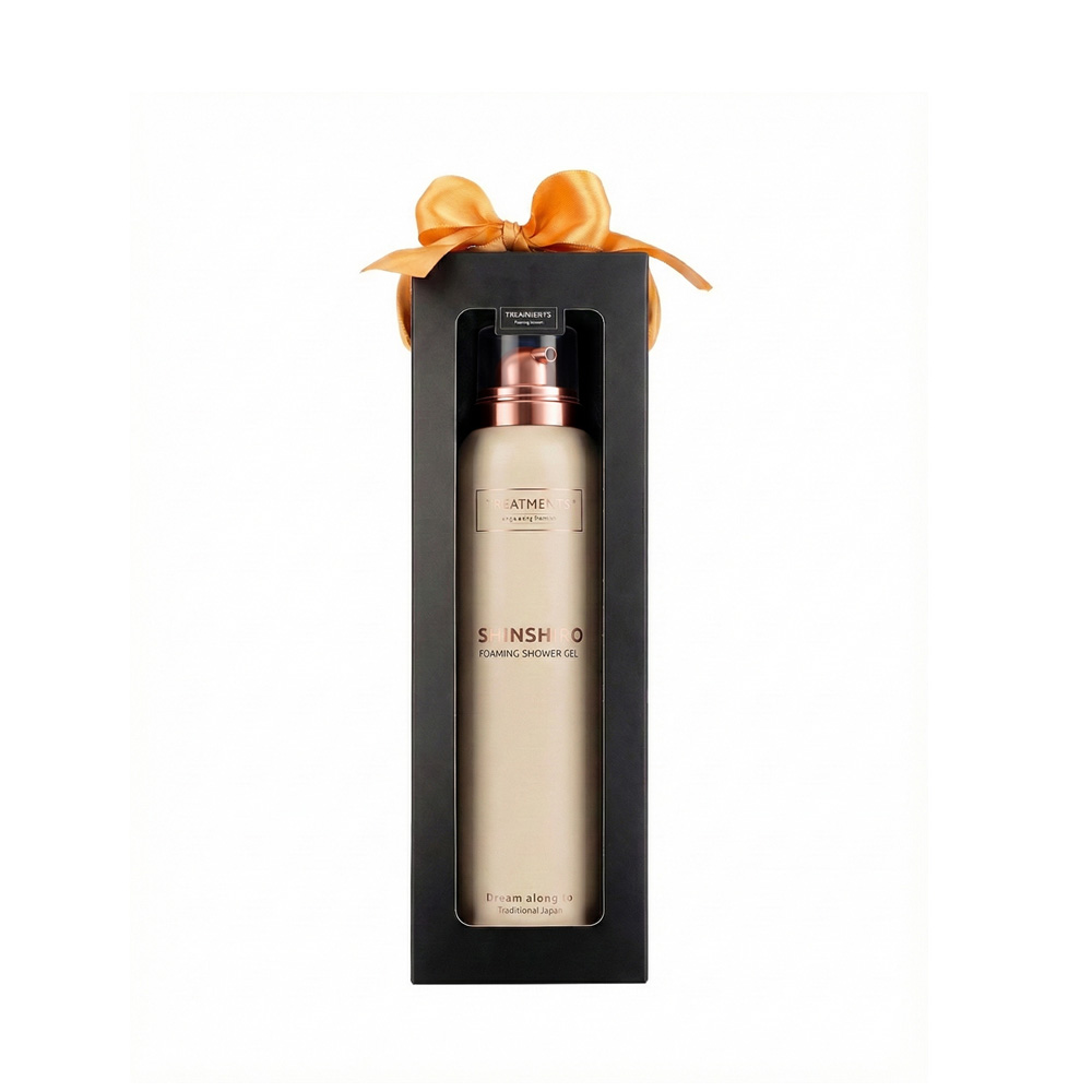 Pieniący się żel pod prysznic TREATMENTS, przeznaczony dla kobiet i mężczyzn, 200 ml, zapakowany w elegancki kartonik, sprawdzi się w codziennej pielęgnacji, dostępne różne warianty zapachowe: 03 - Ceylon, 06 - Mahayana, 08 - Omani, 11 - Uyuni, 16 - Zhejinag, 19 - Shinshiro, 21 - Verona, 98 - Samoa. Znakowanie produktu jest możliwe tylko na srebrnej lub złotej folii z czarnym nadrukiem albo na czarnej apli ze srebrnym lub złotym nadrukiem.