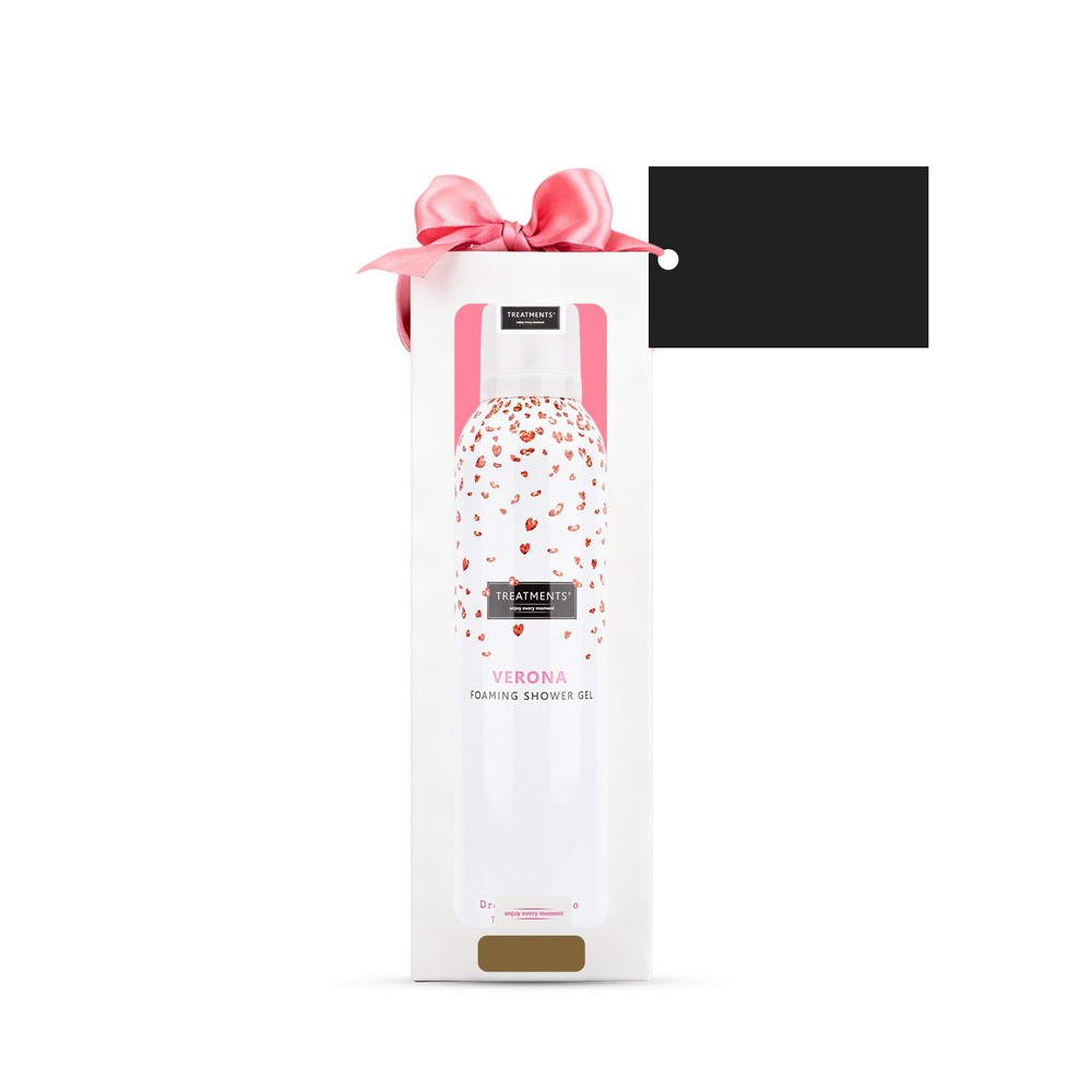 Pieniący się żel pod prysznic TREATMENTS, przeznaczony dla kobiet i mężczyzn, 200 ml, zapakowany w elegancki kartonik, sprawdzi się w codziennej pielęgnacji, dostępne różne warianty zapachowe: 03 - Ceylon, 06 - Mahayana, 08 - Omani, 11 - Uyuni, 16 - Zhejinag, 19 - Shinshiro, 21 - Verona, 98 - Samoa. Znakowanie produktu jest możliwe tylko na srebrnej lub złotej folii z czarnym nadrukiem albo na czarnej apli ze srebrnym lub złotym nadrukiem.